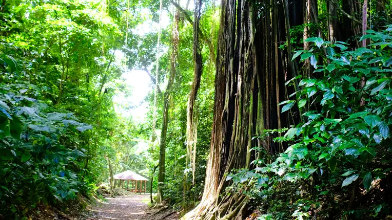 Une occasion de marcher à la fraîcheur, au pied des grands arbres, tout en regardant les vagues s’écraser sur la falaise.