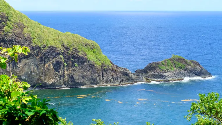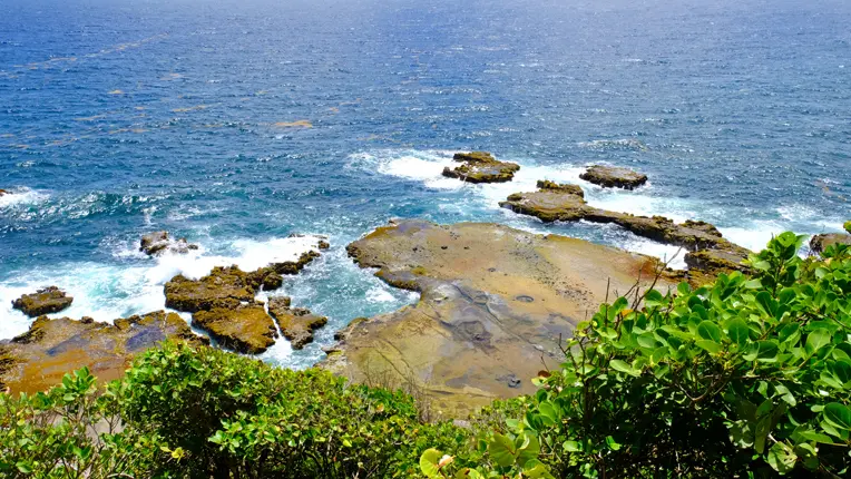 Longez le chemin qui continue sous d'imposant figuiers puis prenez à droite (3) le chemin qui descend à la pointe Ténos. Là, c'est du grand spectacle ! Les vagues se jettent avec fracas sur la côte dans un grand bouillon d'écume. Revenez sur vos pas jusqu'au croisement et partez à droite. Vous arriverez au point de vue sur le Pain de Sucre (4). Profitez du panorama et revenez au point de départ par l'allée centrale.