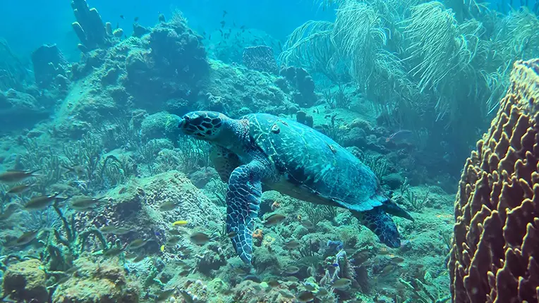 - Des éponges de grandes tailles, faisant partie de l’alimentation de la Tortue imbriquée