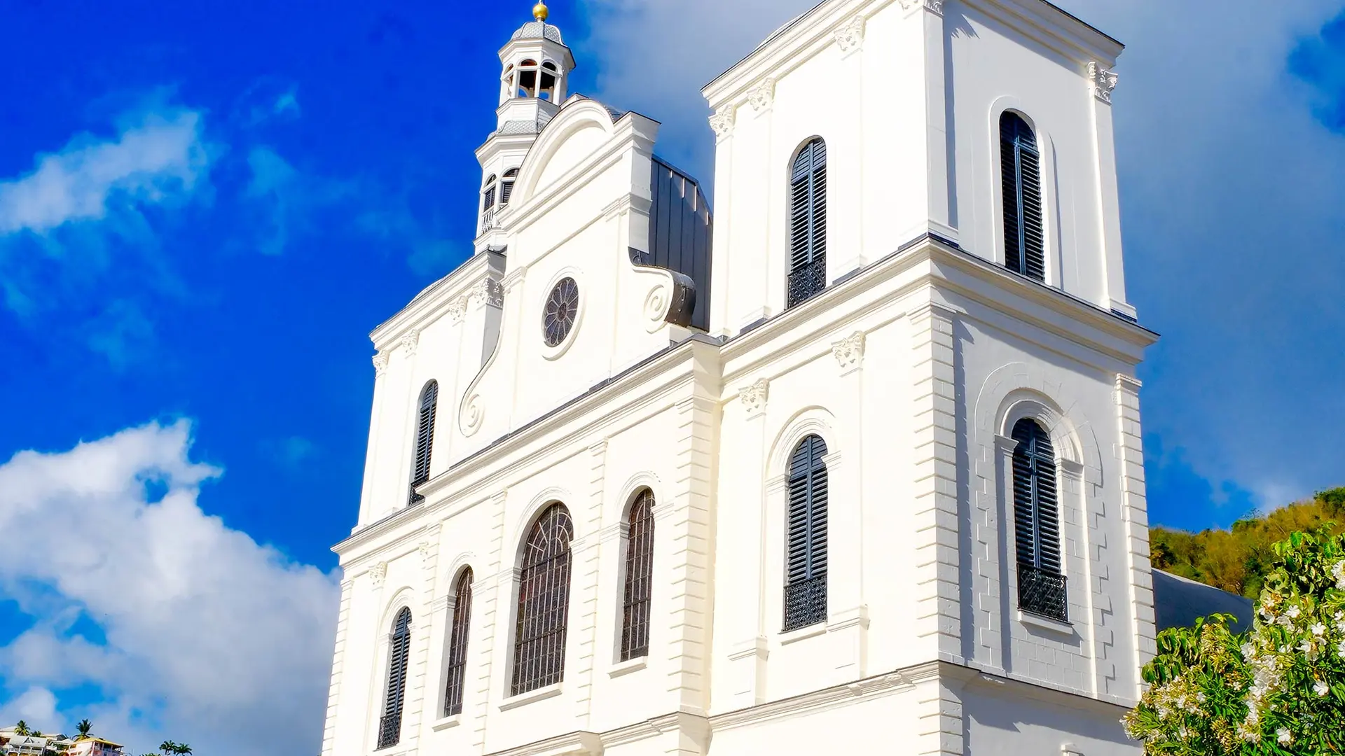 Tout d’abord chapelle des Dominicains, puis église du Mouillage dès 1694, elle devient église paroissiale, sous le vocable de Notre-Dame-Du-Bon-Port ou Notre-Dame-de-l'Assomption. Elle se reconstruit dès 1667 grâce au soutien financier des flibustiers et des marins suite à la bataille navale qui oppose Français et Anglais dans la rade. Avec la création de l’évêché de Saint-Pierre et Fort-de-France, qui suit de peu l’abolition de l’esclavage, l’église devient cathédrale en 1853, après l’arrivée du premier évêque de Martinique, monseigneur Le Herpeur.
