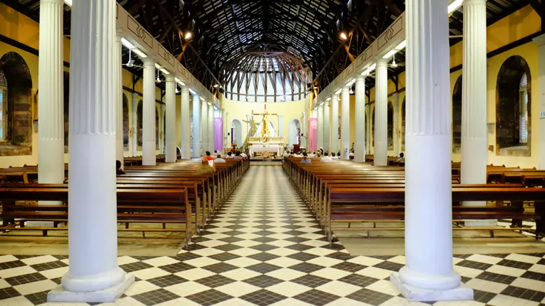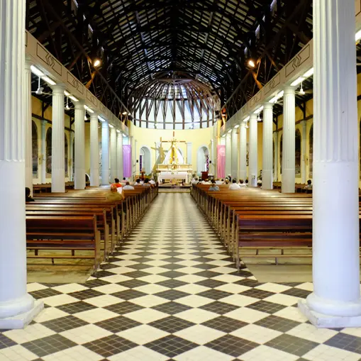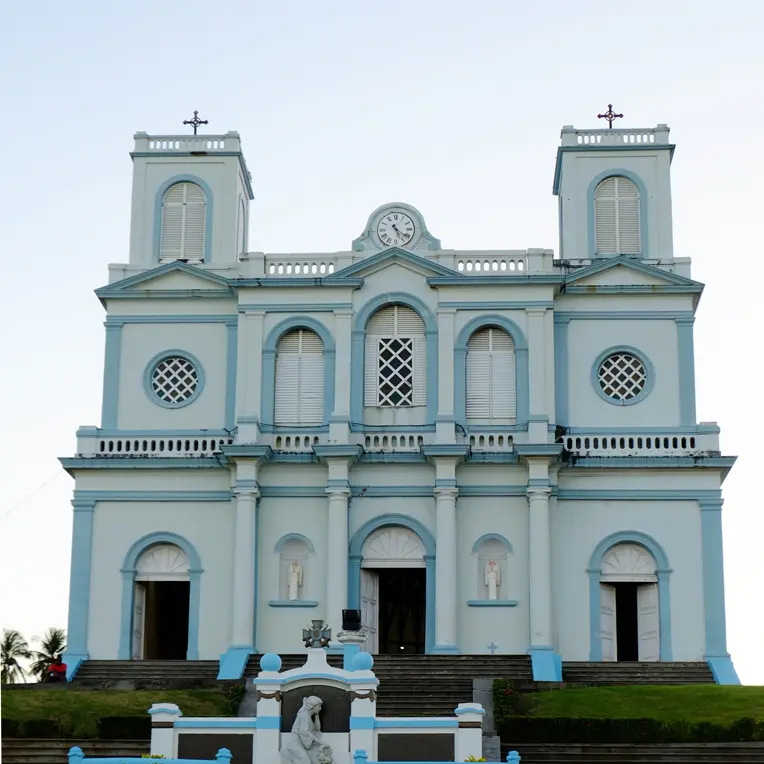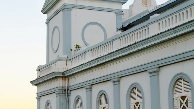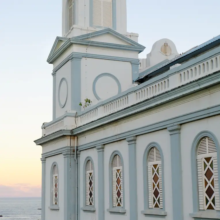 Construite selon un plan basilical, elle se présente sous la forme d’un vaste édifice rectangulaire. On fait venir des reliques de Saint-Martial et de Saint-Jucondin, qui sont scellées dans le maitre-autel. Le cyclone de 1891 et de celui de 1903 occasionnent d’importants dégâts : la toiture est emportée ainsi que l’une des tours. La fête paroissiale a lieu le 15 août, jour de l’Assomption.
