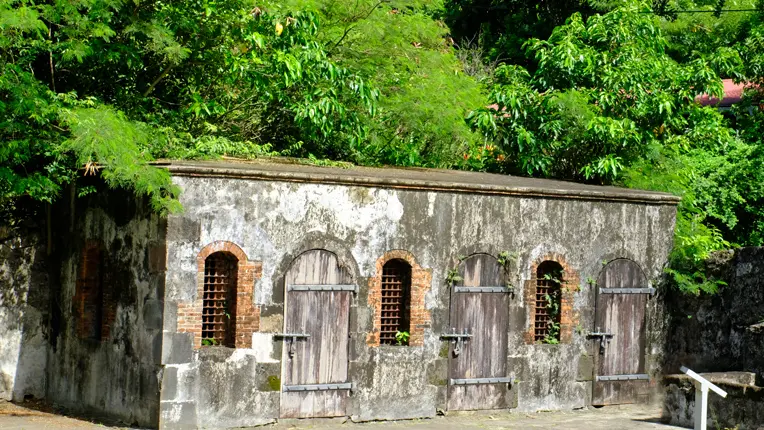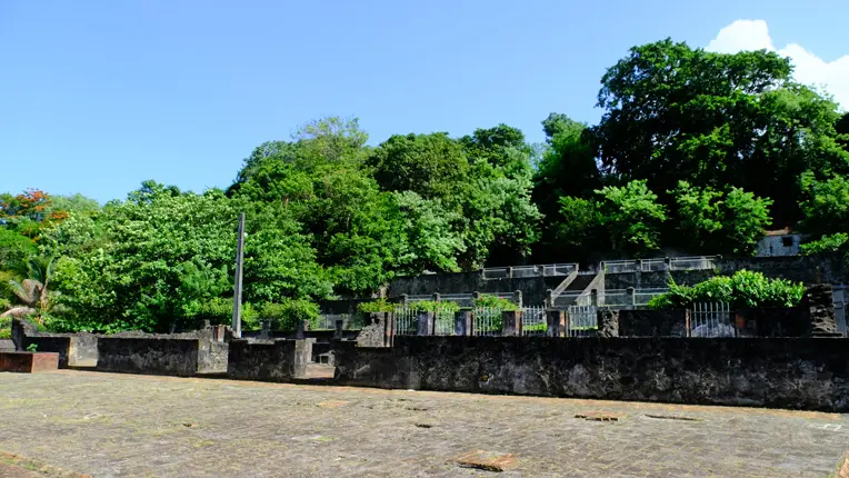 L'ensemble du personnel soignant et pensionnaires périrent ici lors de l'éruption de 8 mai 1902.