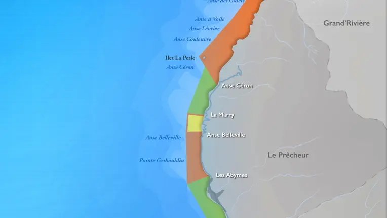 Gérée par le Parc Naturel Régional de la Martinique (PNRM), c’est la 183ème Réserve Naturelle de France et la 3ème de Martinique. Elle s’étend sur tout le littoral de la commune du Prêcheur, de la Pointe Lamare au sud jusqu’à la Rivière Trois Bras au nord. D’une longueur de 12,4 km et d’une largeur de 500 m à la côte, elle représente une surface de 598 ha.