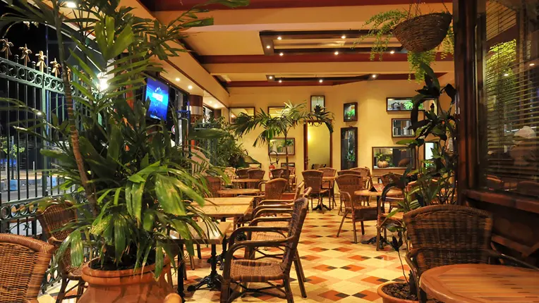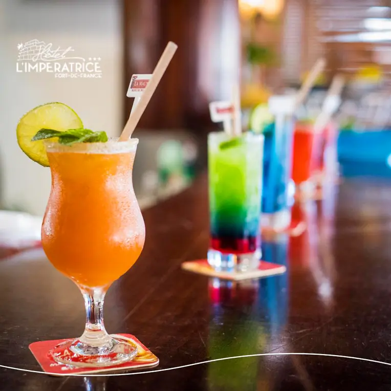 Au rez-de-chaussée de l’Hôtel-Restaurant l’Impératrice, à Fort de France le bar de l'Impé, ouvert sur la ville et sur la place de la Savane, vous accueille toute l’année dans une atmosphère tropicale.