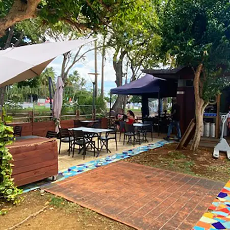 Sur la place de la Savane à Fort-de-France, un petit kiosque attire l'attention des passants : Bernard's Coffee. Niché au cœur de cette place animée. Dans ce petit restaurant de rue avec sa terrasse ombragée, il règne une ambiance conviviale et chaleureuse.