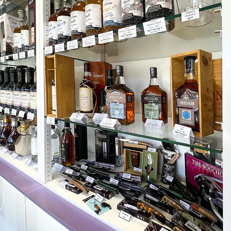 Vous découvrirez une sélection agréable et accessible de champagnes (Maisons Vollereaux, Deutz, Haton, Paul Goerg), de vins français (rouge, blanc, rosé) et une très belle gamme de rhums martiniquais - du blanc pour le ti-punch et les cocktails, aux rhums vieux avec des cuvées de caractère.