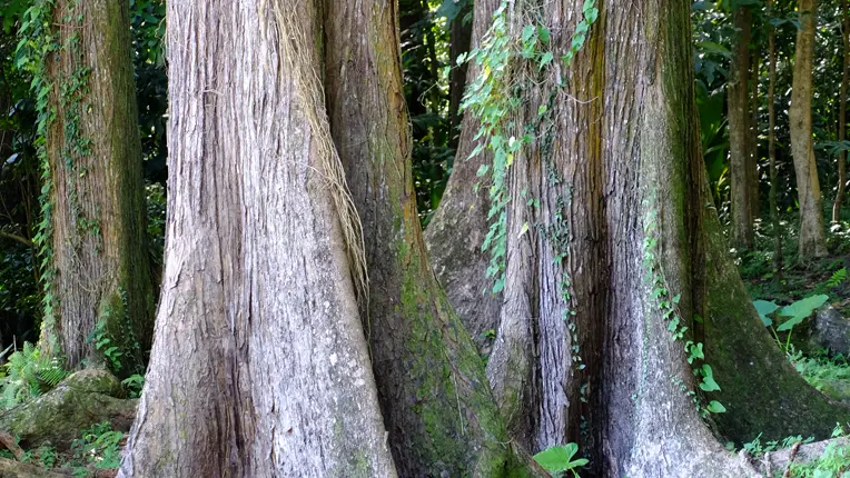 Elle abrite différents arbres dont un magnifique fromager d’une circonférence de 5,50 mètres, mais aussi des pins, des mahoganys...