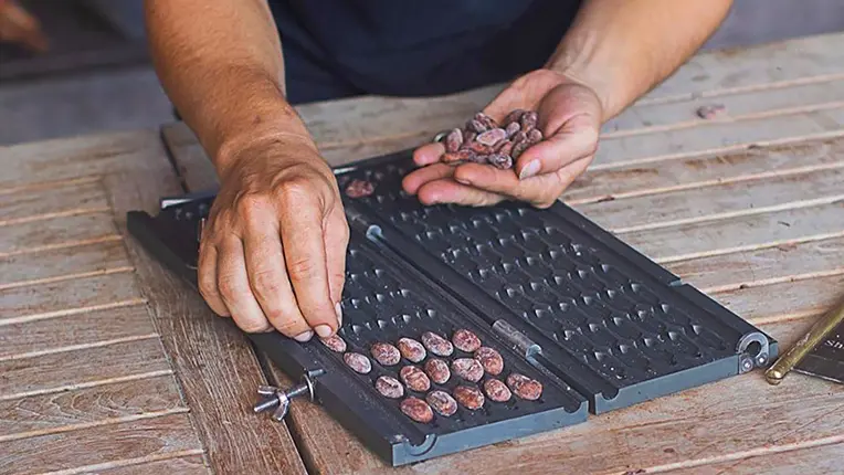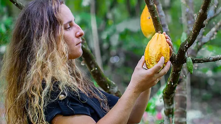 Inscrite dans une démarche « de l’arbre à la tablette », elle maîtrise l’ensemble du processus de transformation : culture des cacaoyers, récolte des cabosses à maturité, fermentation, séchage naturel et transformation des fèves. Ce travail rigoureux et artisanal permet de révéler toute la richesse aromatique du cacao martiniquais.