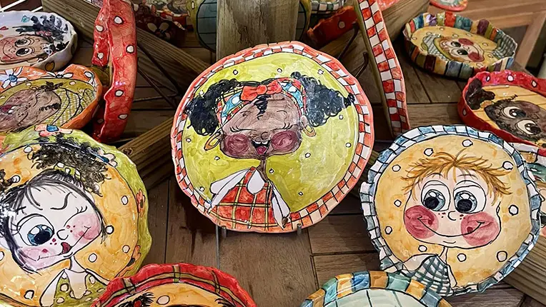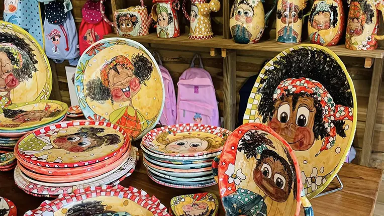 Sylvie Meissonnier, l’artiste dessine et crée un univers tendre et malicieux : personnages espiègles, avec des joues rosies, des taches de rousseur, de grands yeux rieurs, clins d’œil, cheveux frisotés… Les motifs sont inspirés des ambiances créoles, de la mer, des marchés et des gens.