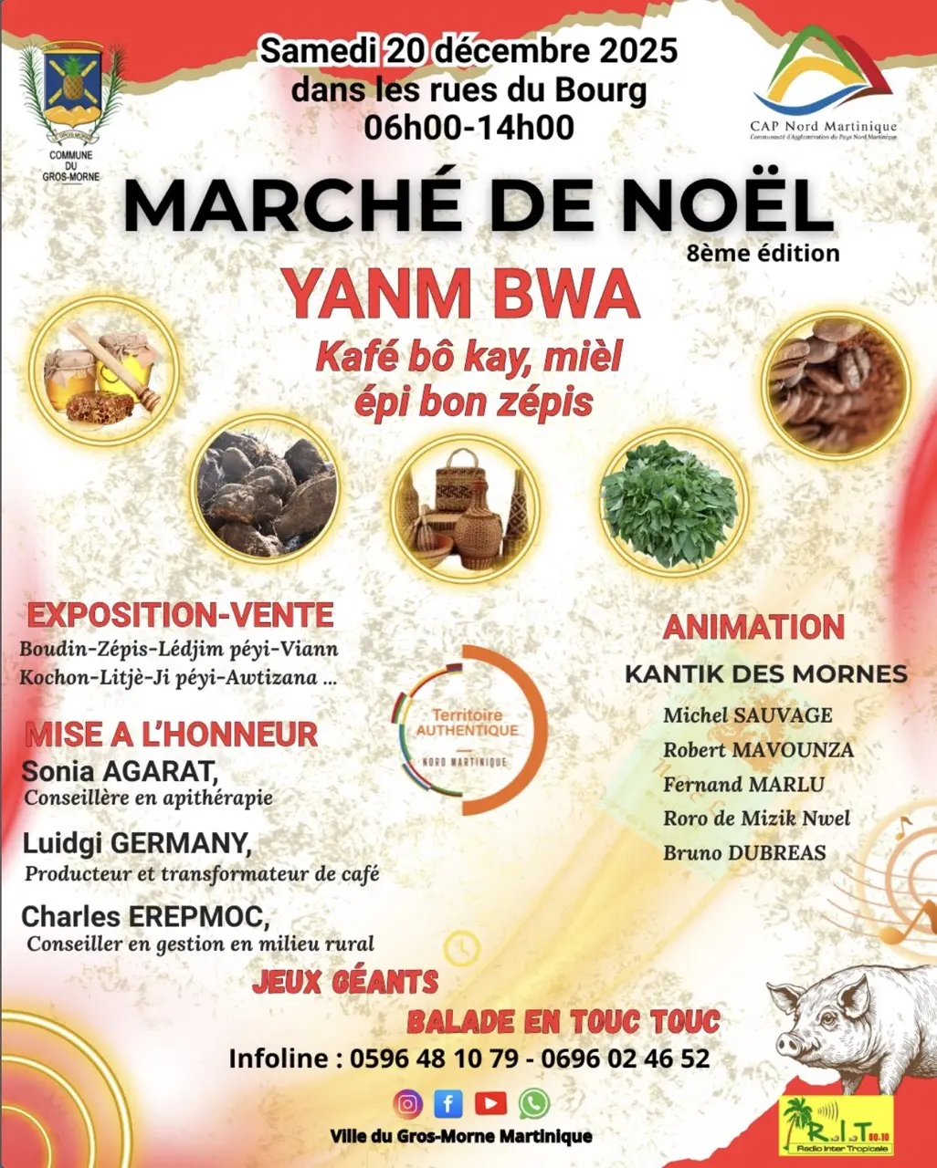 La ville du Gros-Morne organise son marché de Noël le samedi 20 décembre 2025 de 6h à 14h.