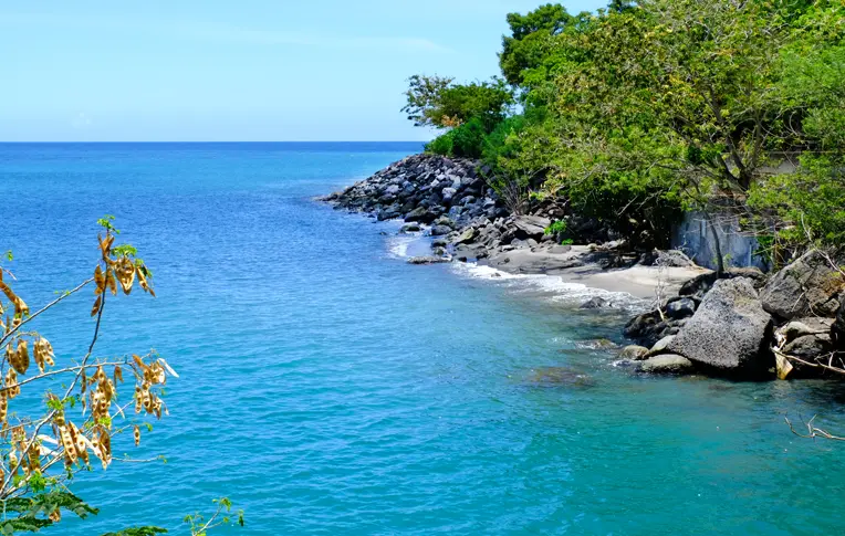La plage de l 'Anse Belleville, un petit trésor caché après le bourg du Prêcheur en Martinique, est une idyllique pour les amoureux de la nature,bien que plus appropriée pour une baignade rapide que pour une journée complète à la plage. Cette crique, accessible à pied se niche dans un cadre bordé de gros rochers. Pour atteindre sa bande de sable, une petite immersion dans l'eau est nécessaire.