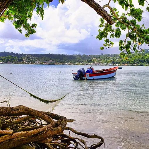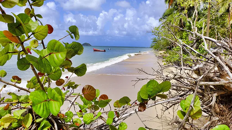 La plage de l'Autre Bord, nichée entre la ville de La Trinité et la Presqu’île de la Caravelle, se situe précisément entre la Pointe Batterie et l'Anse des Raisiniers en Martinique. Elle est un véritable havre de paix, un petit coin de paradis pour ceux qui la découvrent. Cette plage séduit particulièrement les familles grâce à ses attraits naturels : un sable fin presque blanc, des eaux claires et peu profondes, et des zones ombragées parfaites pour le pique-nique, offrant ainsi un cadre idéal pour une journée détente au bord de l'eau.