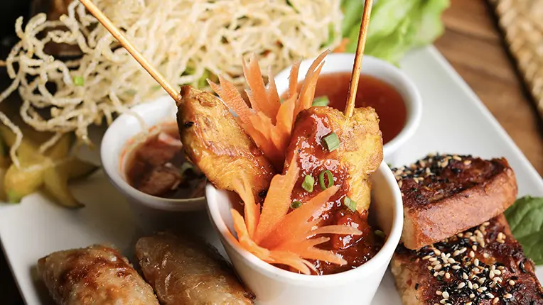 • L’Assiette Découverte Thaï à partager : nems, brochettes, rouleaux de printemps, dim sum