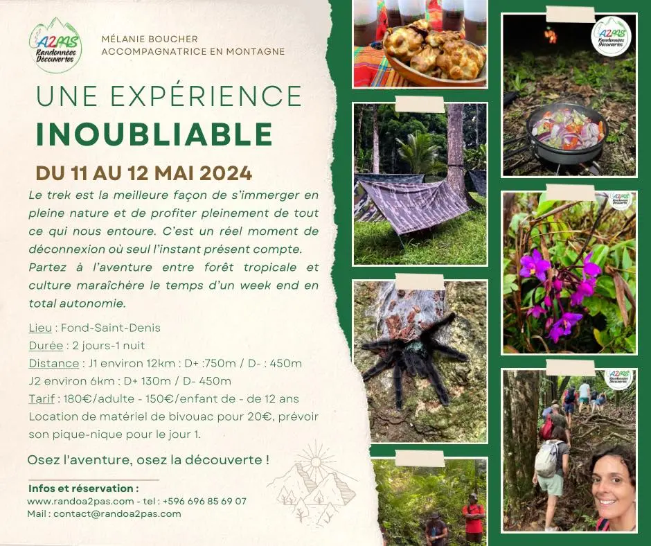 Partagez une expérience inoubliable avec Rando A2Pas du 11 au 12 mai 2024. Partez à l'aventure entre forêt tropicale et culture maraîchère le temps d'un week-end en total autonomie.