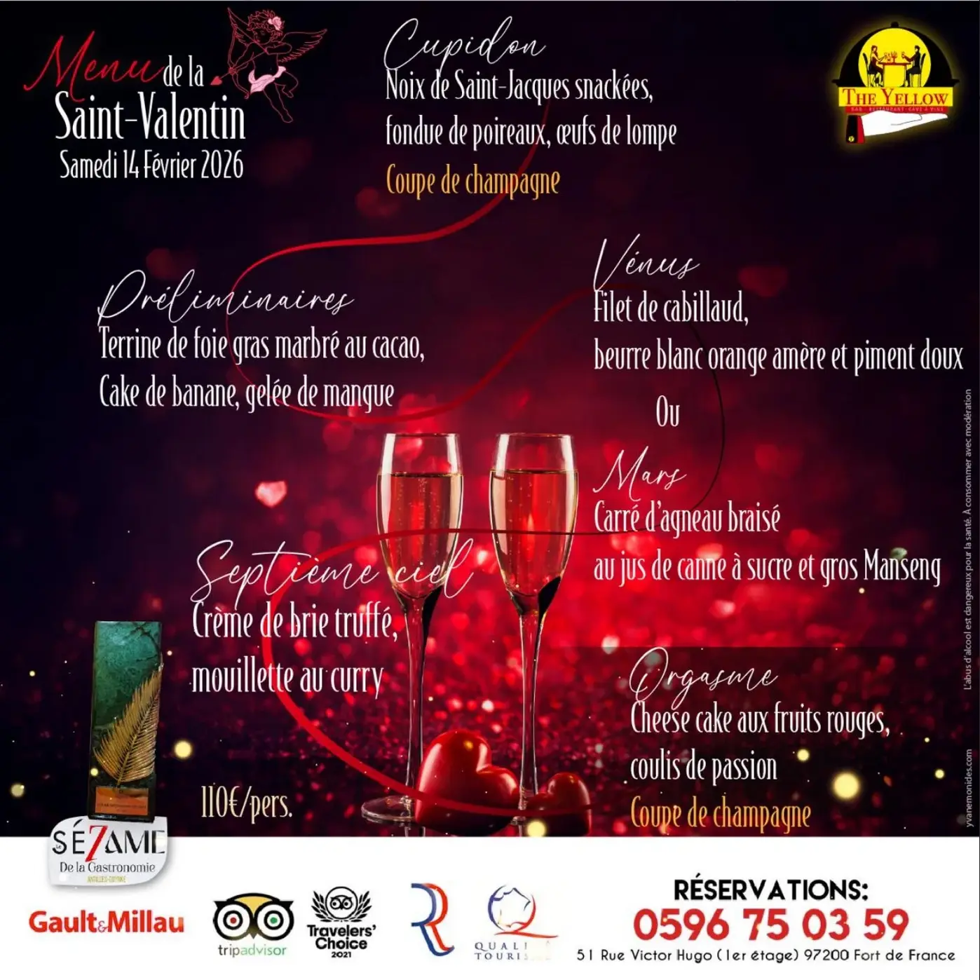 Dites lui avec amour et prouvez lui autrement au restaurant The Yellow à Fort-de-France le samedi 14 février 2026