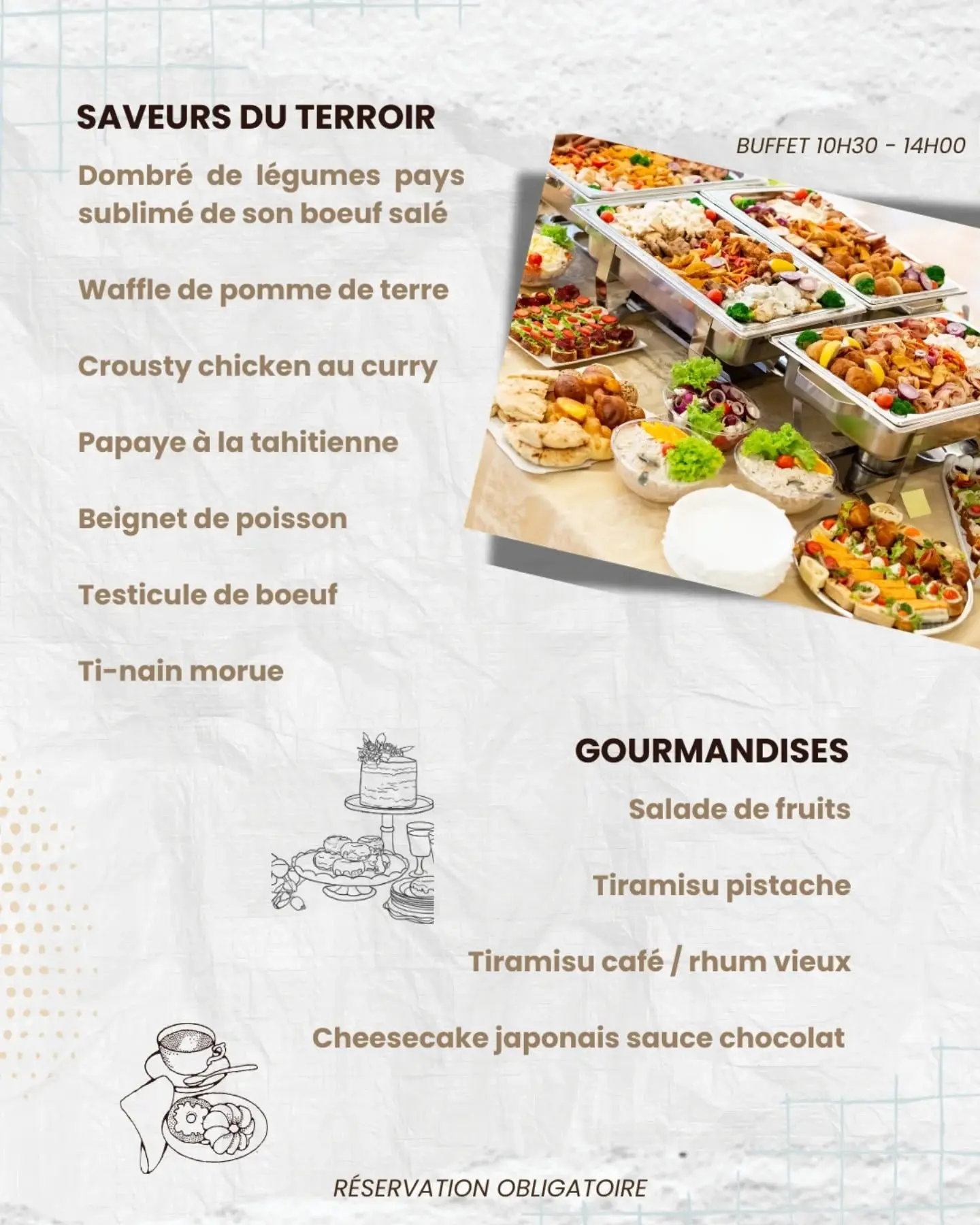 Réservez votre table dès maintenant pour vivre un moment convivial et délicieux en famille ou entre amis au 0596 65 91 35 ou au 0696 45 12 27.