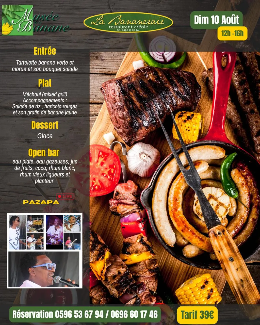 Rendez-vous dimanche 10 août de 12h à 16h pour un moment gourmand & festif avec en live Pazapa au restaurant La Bananeraie à Sainte-Marie
