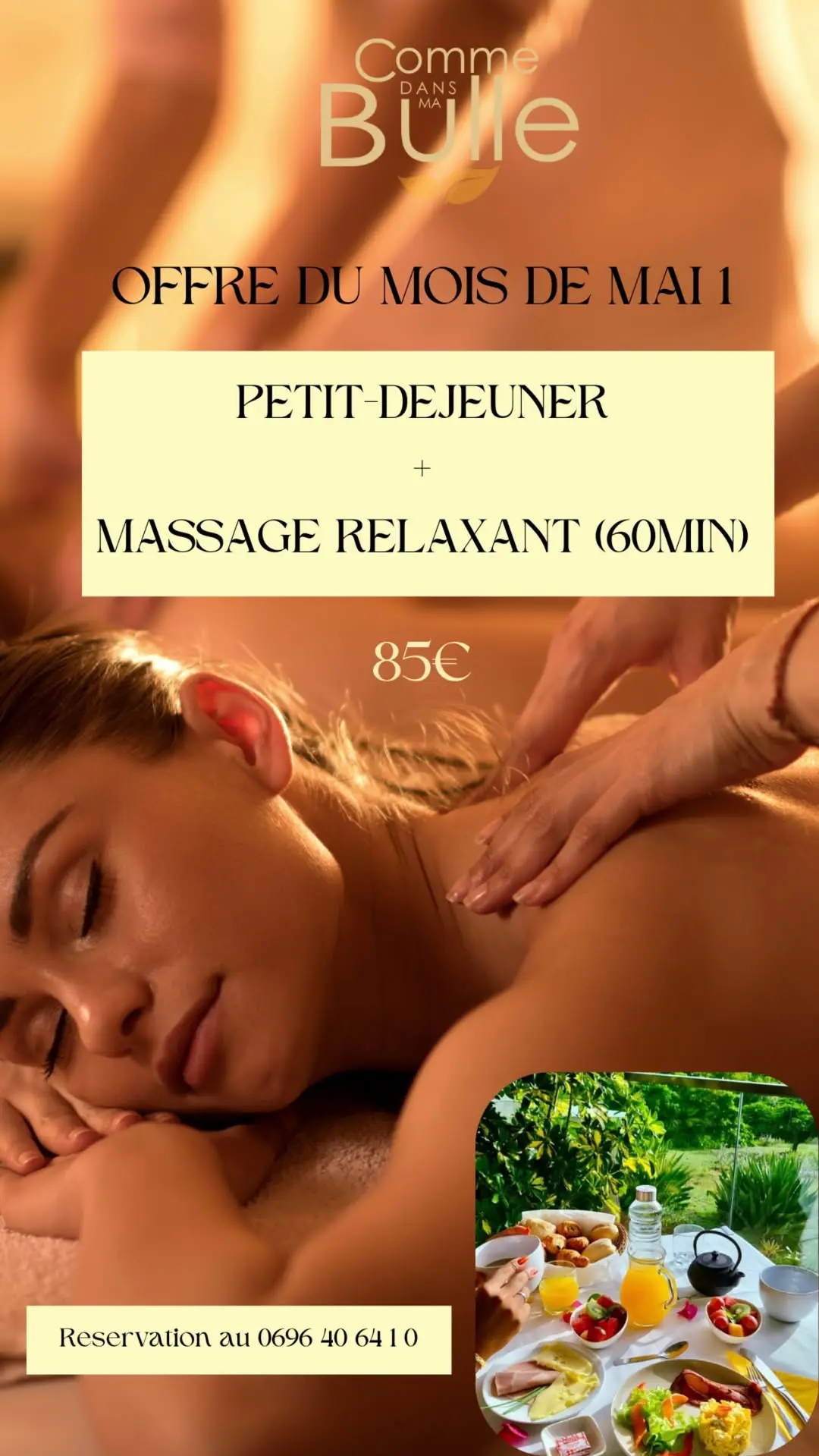 - Massage relaxant (60 min) + Un petit déjeuner Tarif : 85€/pers