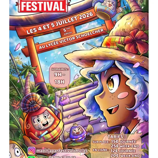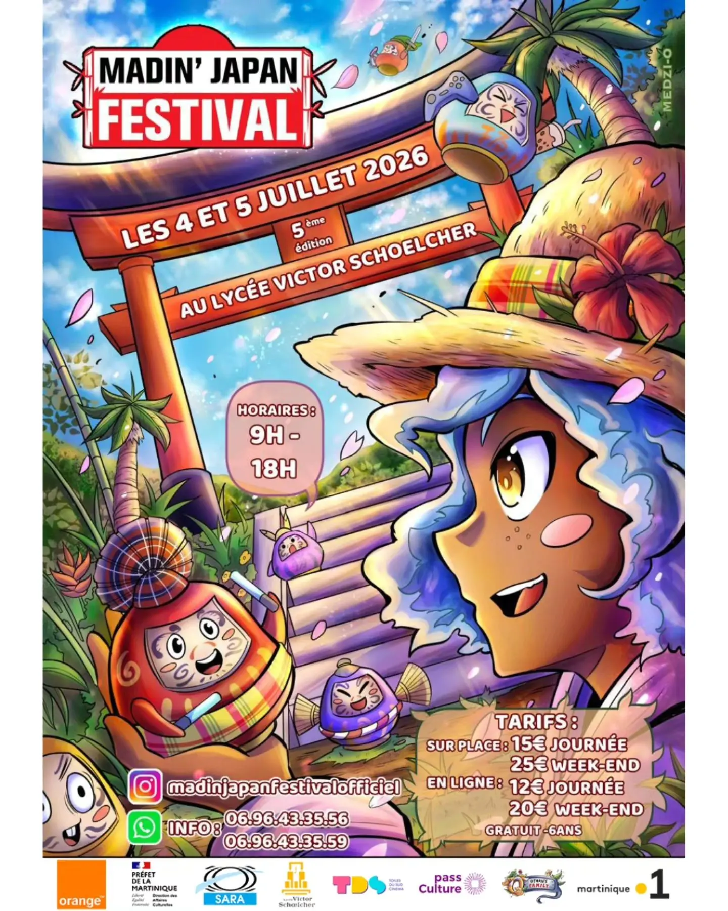 Préparez-vous pour un week-end 100% culture japonaise et pop culture en Martinique avec la 5ème édition du Madin' Japan Festival, les 4 et 5 juillet 2026 de 9h à 18h au Lycée Victor Schoelcher.