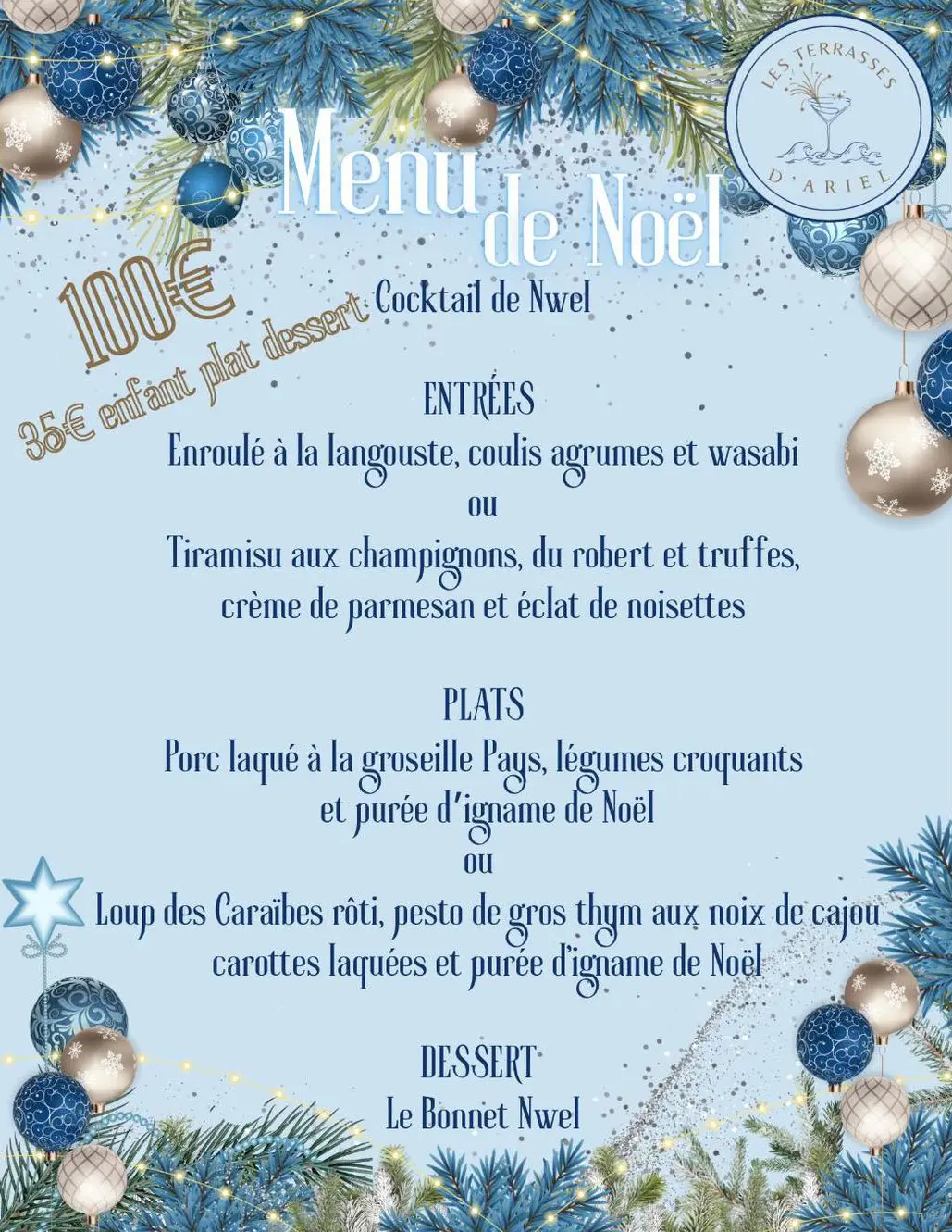 Découvrez le menu de Noël que vous propose le restaurant Les Terrasses d'Ariel à Sainte-Luce.