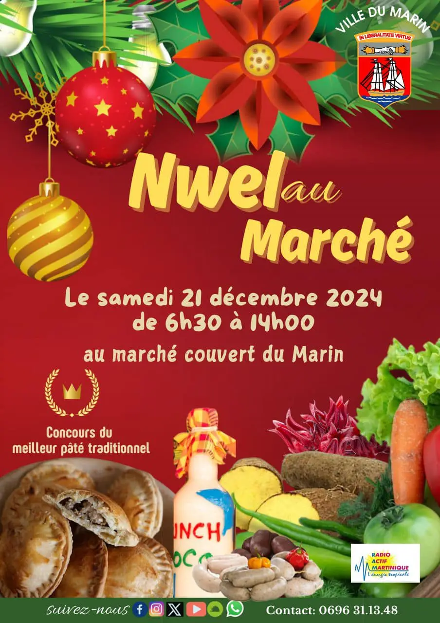 Rendez-vous le samedi 21 déceembre de 6h30 à 14h au marché couvert du Marin pour un marché de Nwel.