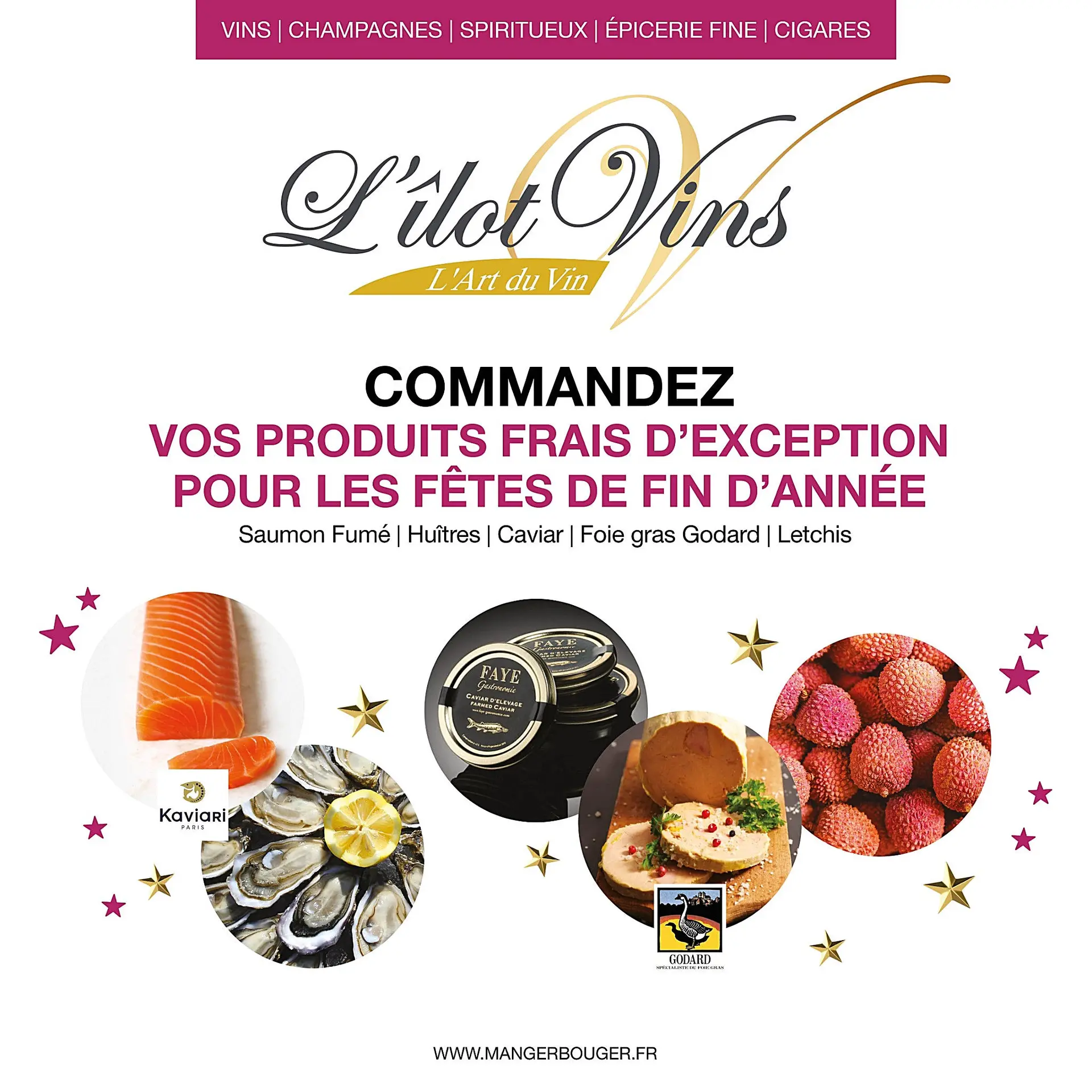 Huîtres, Caviar, Saumon, Foie Gras, Jambon Serrano, Litchi...Faites de vos fêtes de fin d'année un moment mémorable avec nos produits d'exception. Qualité et fraîcheur garantie ! Passez commande jusqu'au 9 décembre 2023.