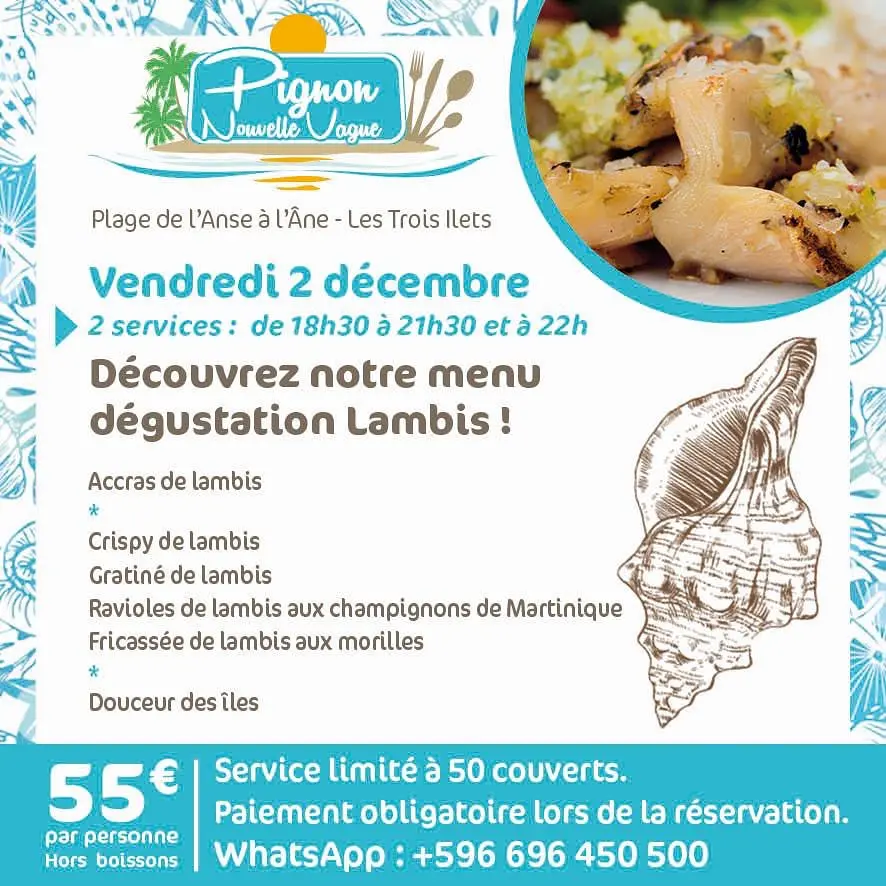 Le vendredi 2 décembre, découvrez le menu dégustation autour du Lambis du restaurant Pignon Nouvelle Vague.