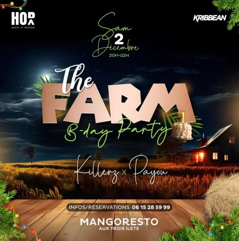 THE FARM avec Dj Killerz & Dj Payou, le 2 Décembre à Mangoresto ! Et oui ! 𝑻𝑯𝑬 𝑭𝑨𝑹𝑴 ça fait déjà 1 an!