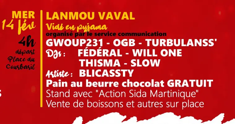 Rendez-vous le mercredi 14 février à partir de 04h du matin pour un vidé en pyjama au départ de la Place du Courbaril au Robert.