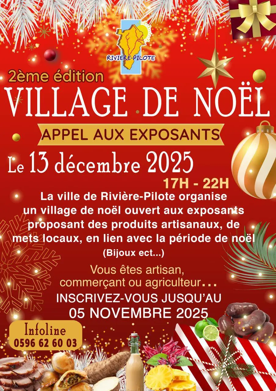 La Ville de Rivière-Pilote vous invite à participer à la 2e édition du Village de Noël le 13 décembre 2025 de 17h à 22h !