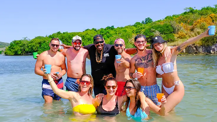 Ambiance festive et conviviale avec baignade aux fonds blancs, balade nature, déjeuner créole sur la plage et animations musicales.