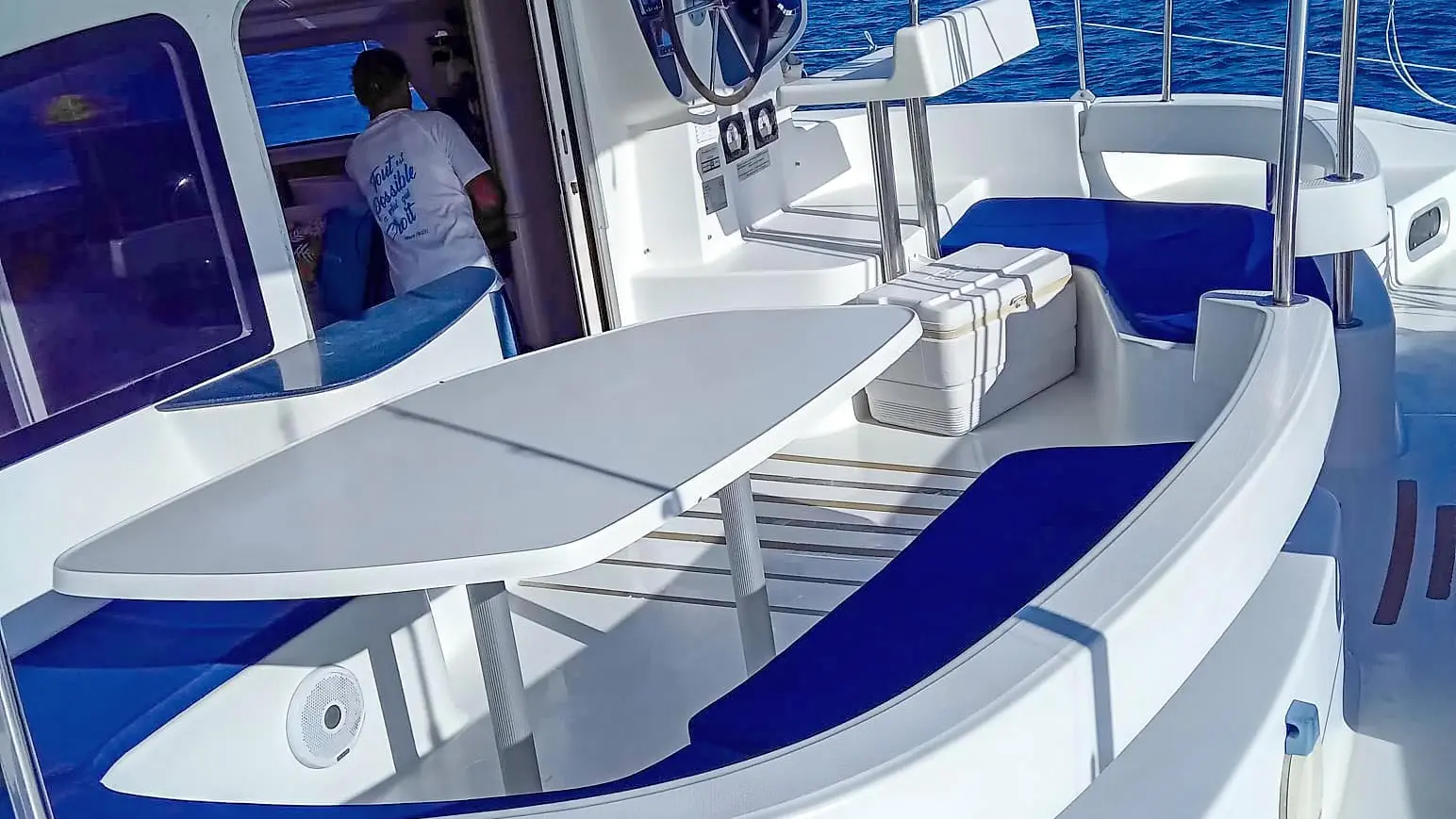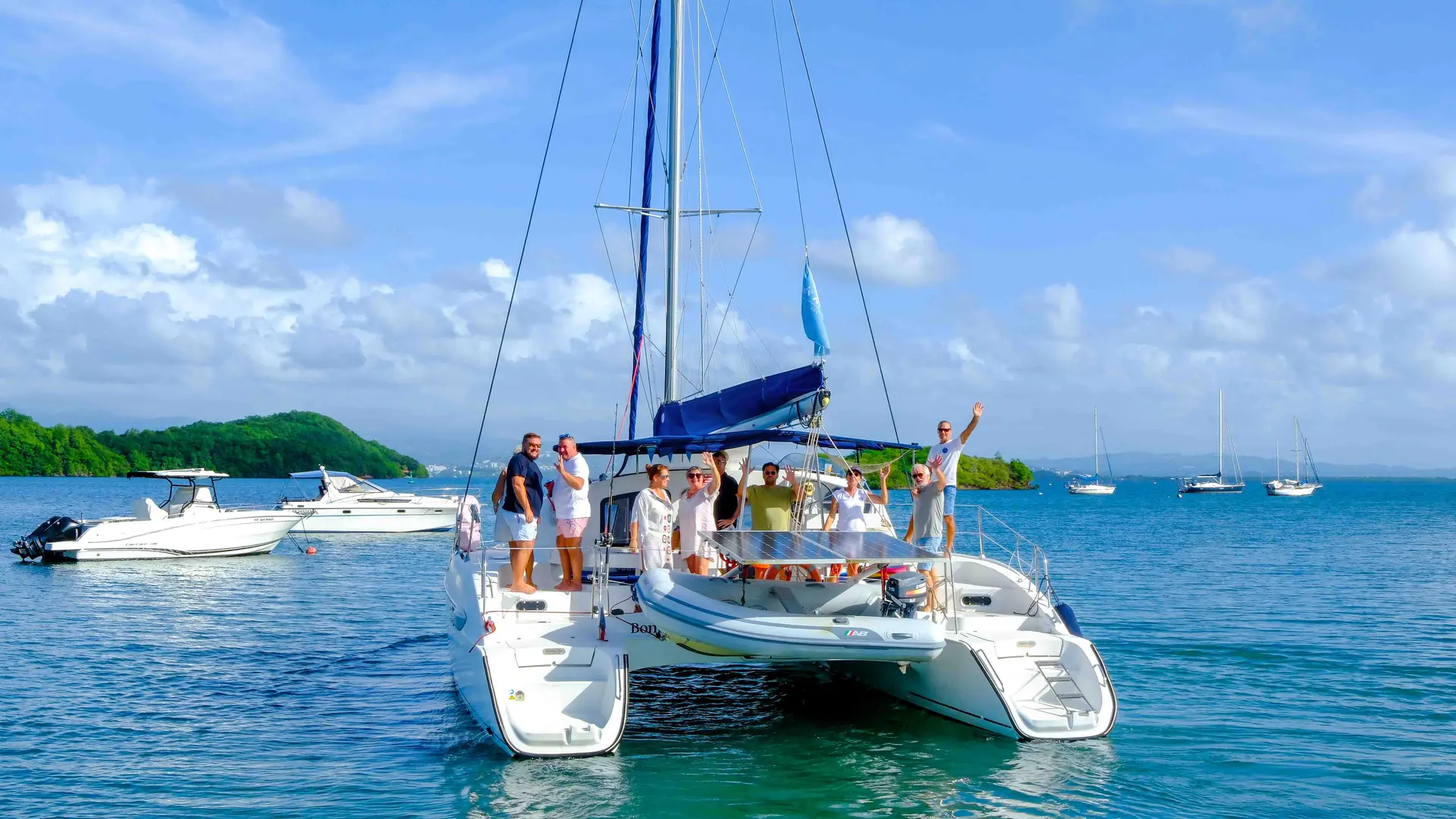 Grâce à son faible tirant d’eau, le catamaran peut s’approcher des côtes et mouiller dans des anses peu profondes, offrant ainsi des haltes exclusives et privilégiées. C’est cette approche intime et responsable de la Martinique qui fait toute la différence de Blue Fish Excursion.