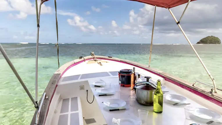 L’esprit Bon Bagay : c’est prendre le temps, profiter et respecter... Avec une navigation côtière en petit groupe, des mouillages raisonnés, une sensibilisation à la faune protégée et au respect des sites.