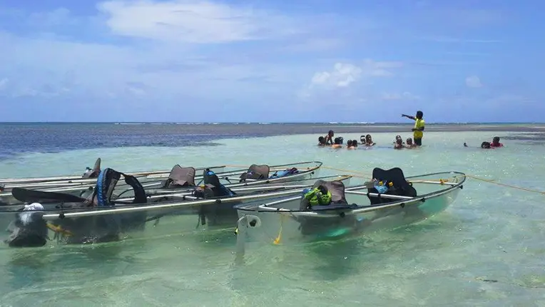 Au Départ de la plage de Pointe Chaudière, vous suivrez un parcours balisé jusqu’au Cul-de-Sac de Petite Grenade, surnommé « Trou Cochon » au cœur de la baie des mulets. Vous profiterez d’une vue panoramique grâce à la transparence de votre embarcation sur les fonds marins sans jamais perturber l’écosystème. Ici, tout est pensé pour allier détente, respect de la nature et plaisirs : vous évoluez à votre rythme, dans un univers turquoise et vert, entre mer et mangrove.