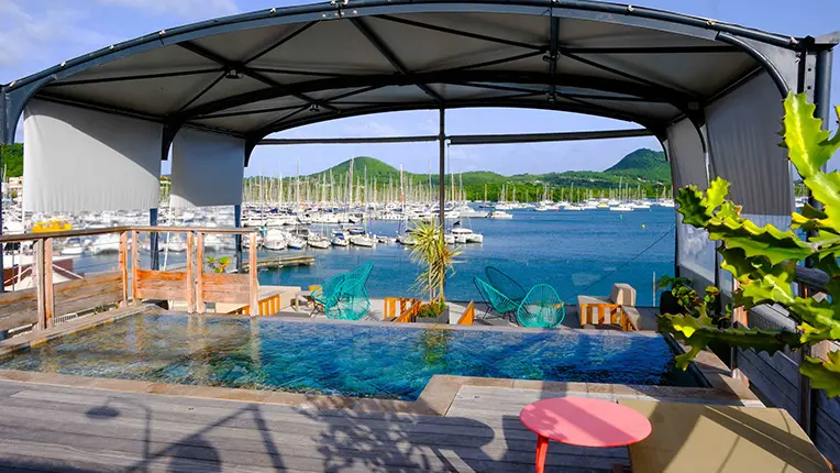 Situé au sud de la Martinique, face à la marina du Marin, Sable Bleu Boutique Hôtel est une adresse 4 étoiles unique où se mêlent élégance contemporaine, confort haut de gamme et engagement écoresponsable.