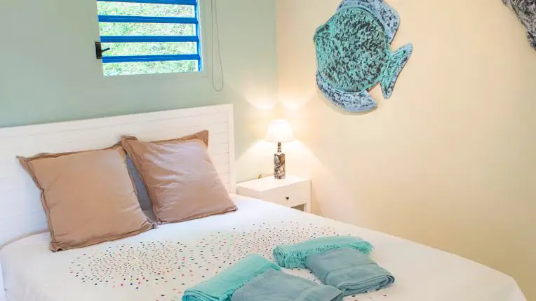 La résidence Kaz O’Rocher met à votre disposition quatre appartements de 60 m² : Le Rocher, Sainte Lucie, Morne Larcher et La Cherry. Conçus pour accueillir jusqu’à quatre personnes, ces logements allient confort et élégance avec :