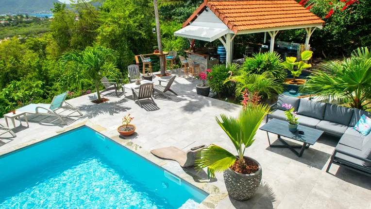 À proximité, le bar avec cuisine équipée vous invite à des moments de détente en admirant les couchers de soleil fabuleux sur la mer des Caraïbes. Ces espaces communs favorisent la convivialité tout en préservant votre intimité.
