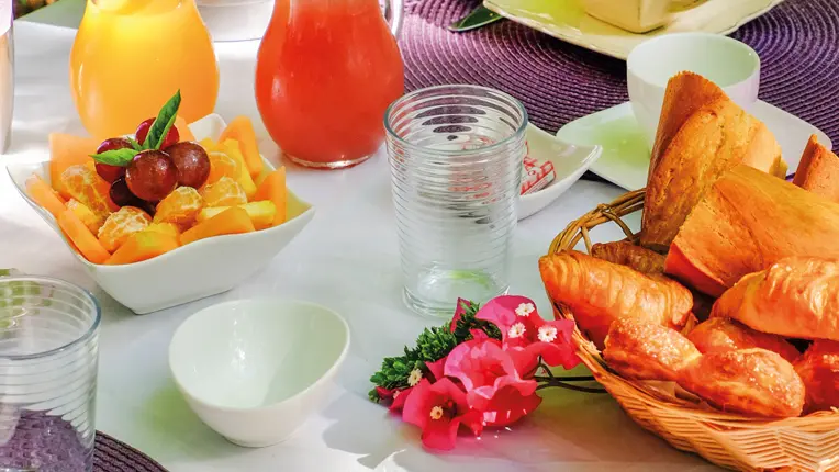 Le petit-déjeuner commandé par tablette est servi sur plateau déposé à l’entrée de votre espace ou dans le sas de la bulle selon vos désirs. Dans la maison familiale surplombant la baie, le chef prépare une cuisine locale et raffinée mettant en valeur les produits du terroir, en interaction avec le potager du domaine.