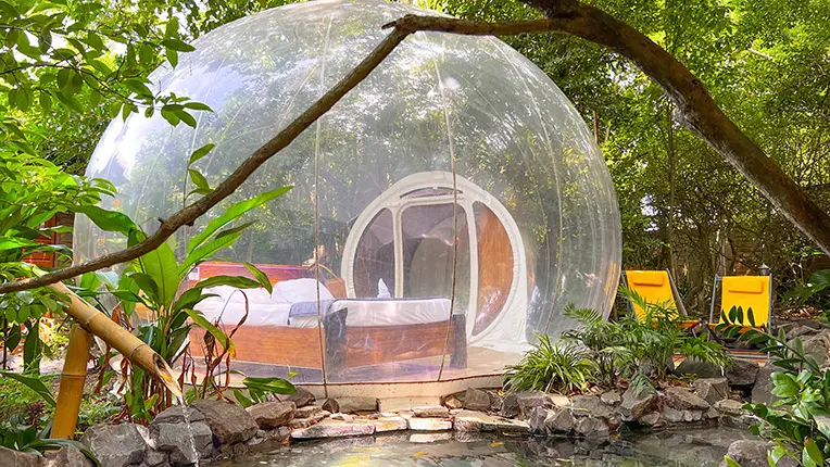 Un hébergement insolite immergé dans la nature face à la splendide baie du Vauclin. Le domaine comprend quatre bulles transparentes climatisées et sans vis-à-vis, pour dormir sous les étoiles et se déconnecter du monde.