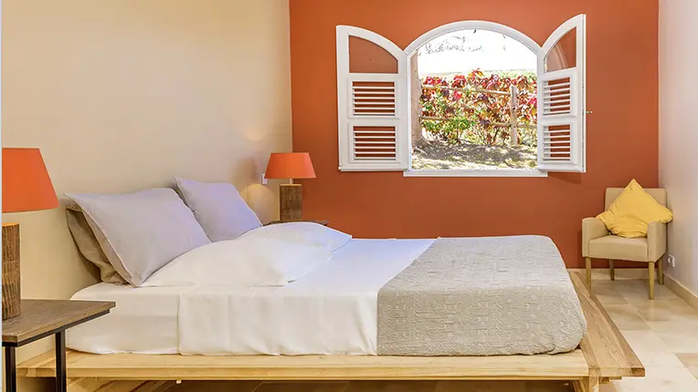 Au bout de la petite route du Cap Est au François, la Villa Cerisier s’ouvre sur les eaux claires du lagon, juste au bout du jardin. On vit ici au rythme des baignades, des départs en bateau depuis le ponton privé et des couchers de soleil qui pèsent tout doucement sur la terrasse.