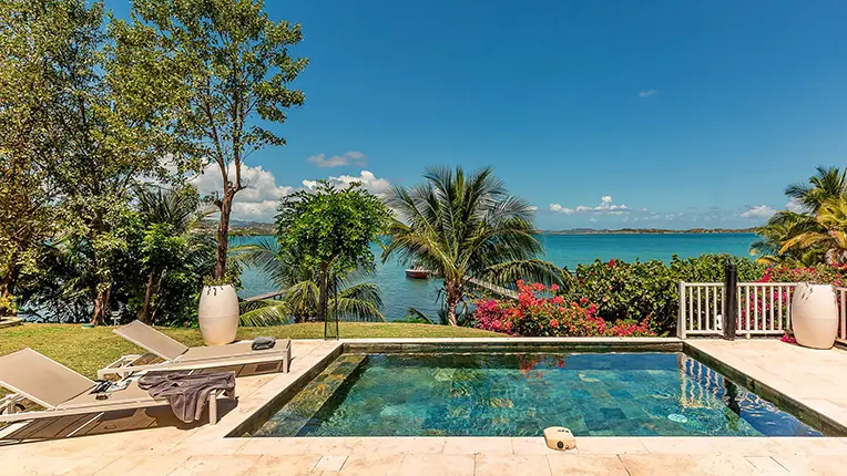 La magnifique piscine et les larges terrasses donnent la sensation de vacances infinies, entre deux sorties sur les Fonds Blancs, une escale à la Baignoire de Joséphine, l’observation des iguanes des Petites Antilles sur l’îlet Chancel.